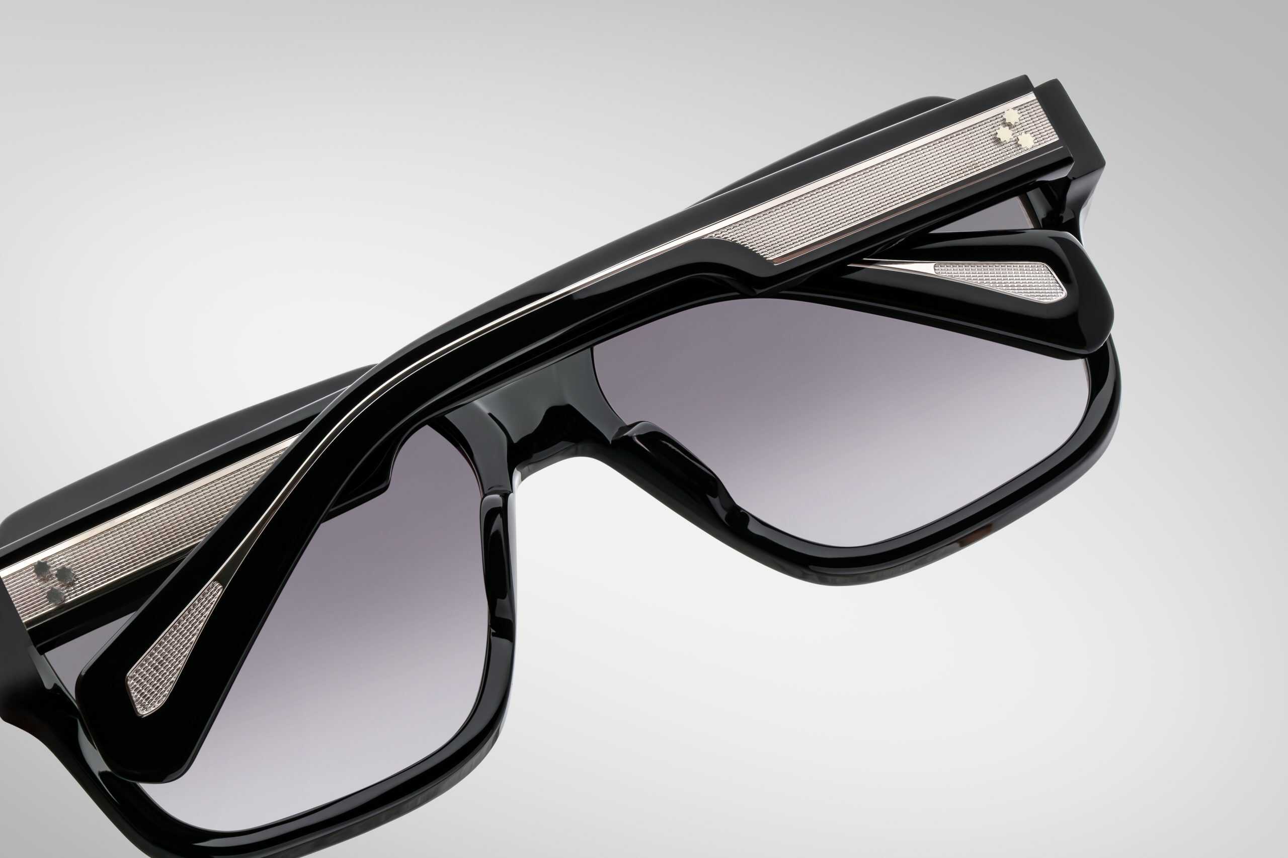 The unique character of the model is emphasised by exposed silver wirecore LeBaron with dynamic lines inspired by Art Deco style and sculpturally designed endpieces. The whole is complemented by CR39 lenses with a base of 6 and a subtle Jet gradient, equipped with an anti-reflective coating on the inside, guaranteeing visual comfort and a refined visual finish.