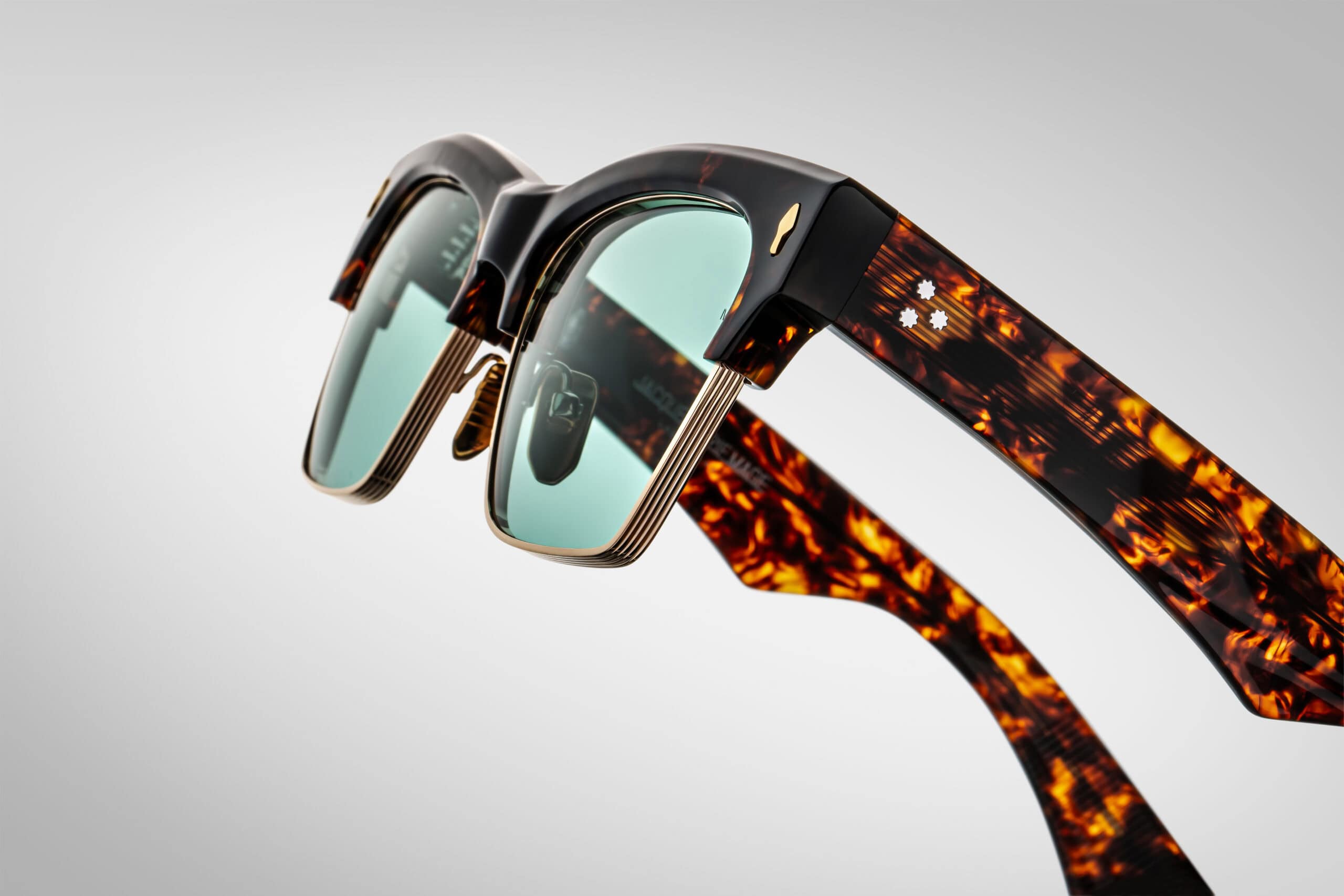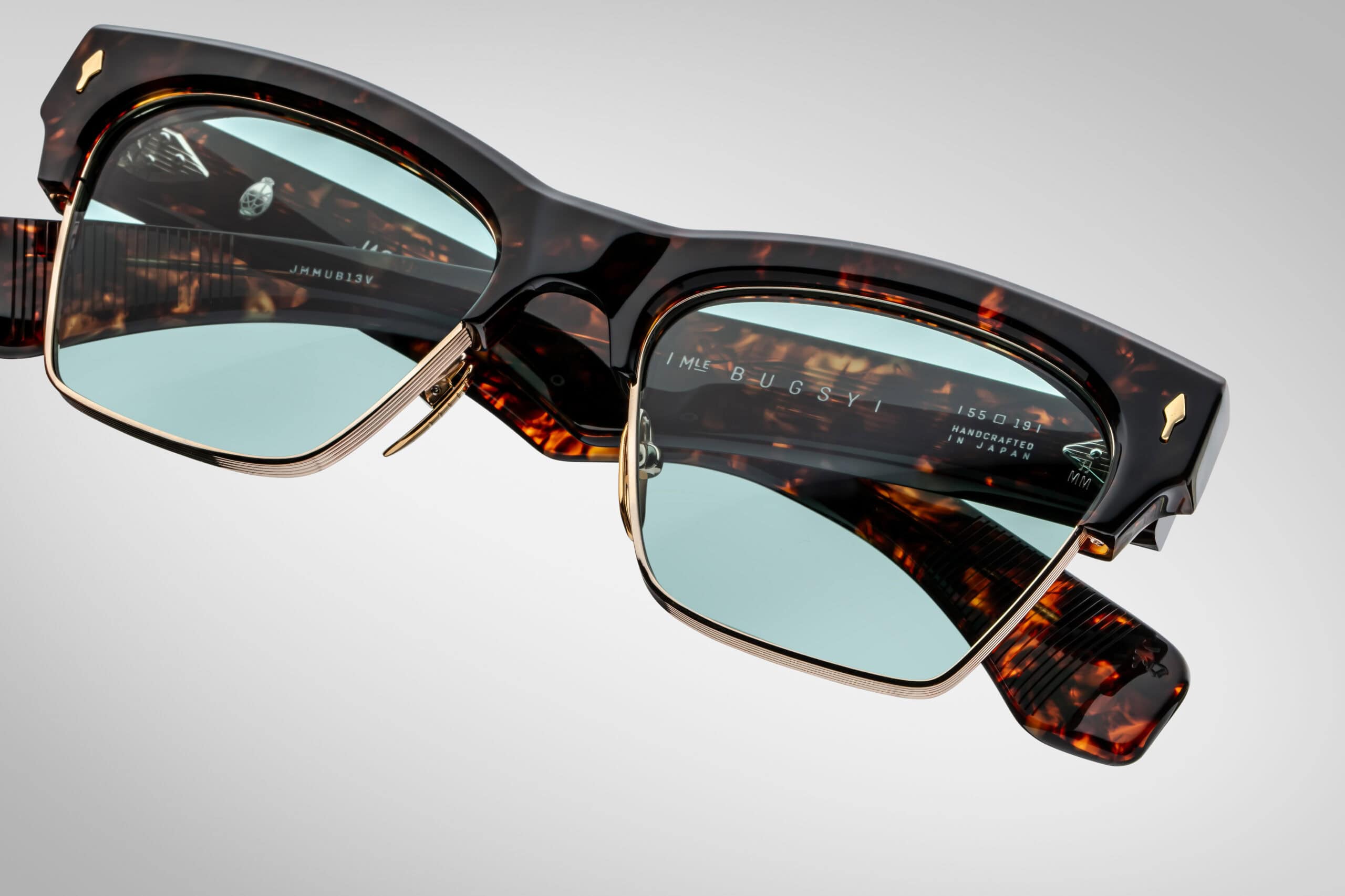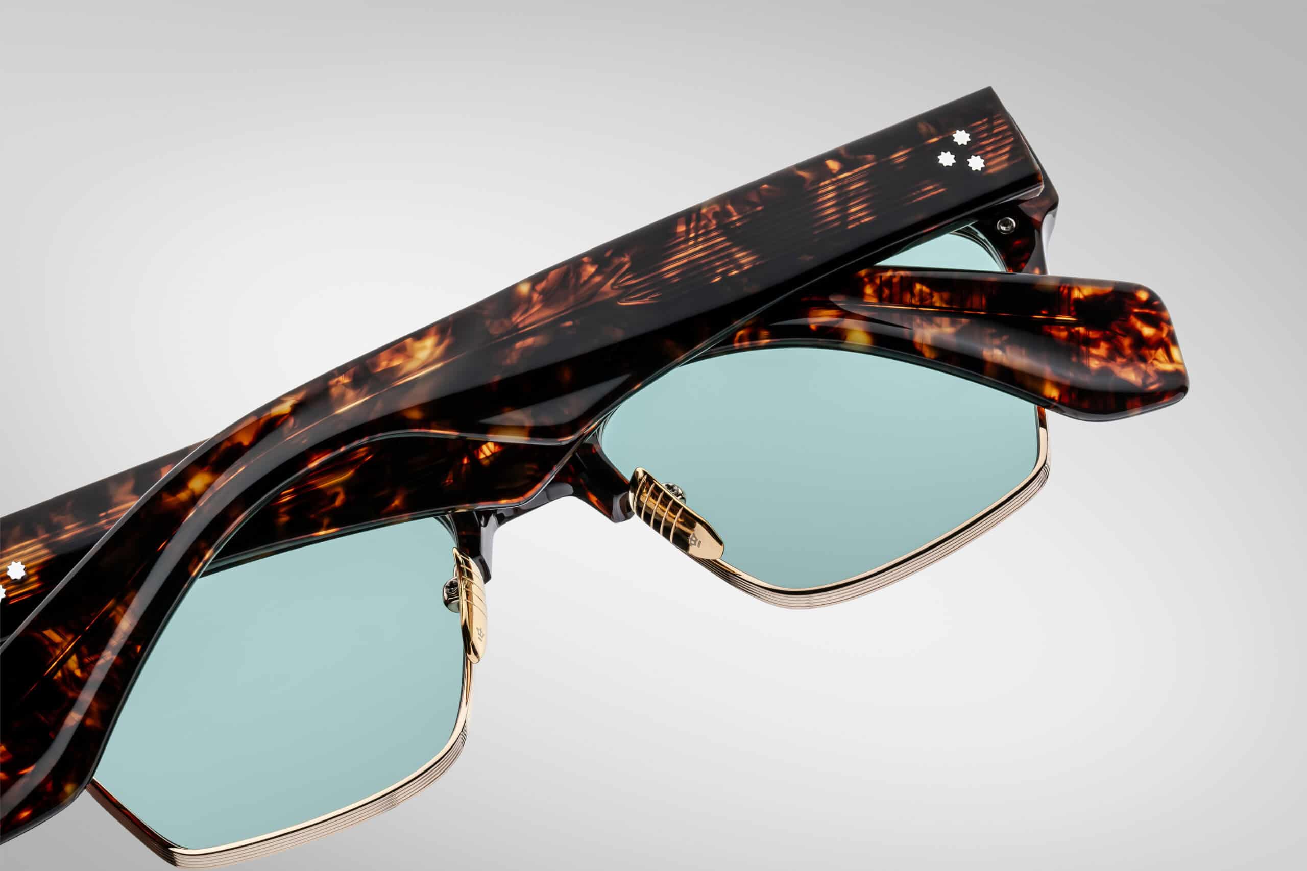 Blue lenses add lightness and a modern look to the whole, and the characteristic metal details and arrow-shaped rivets emphasise the recognisable style of Jacques Marie Mage. Every element, from the delicate engraving to the proportions, is an expression of masterful craftsmanship and exceptional aesthetics.