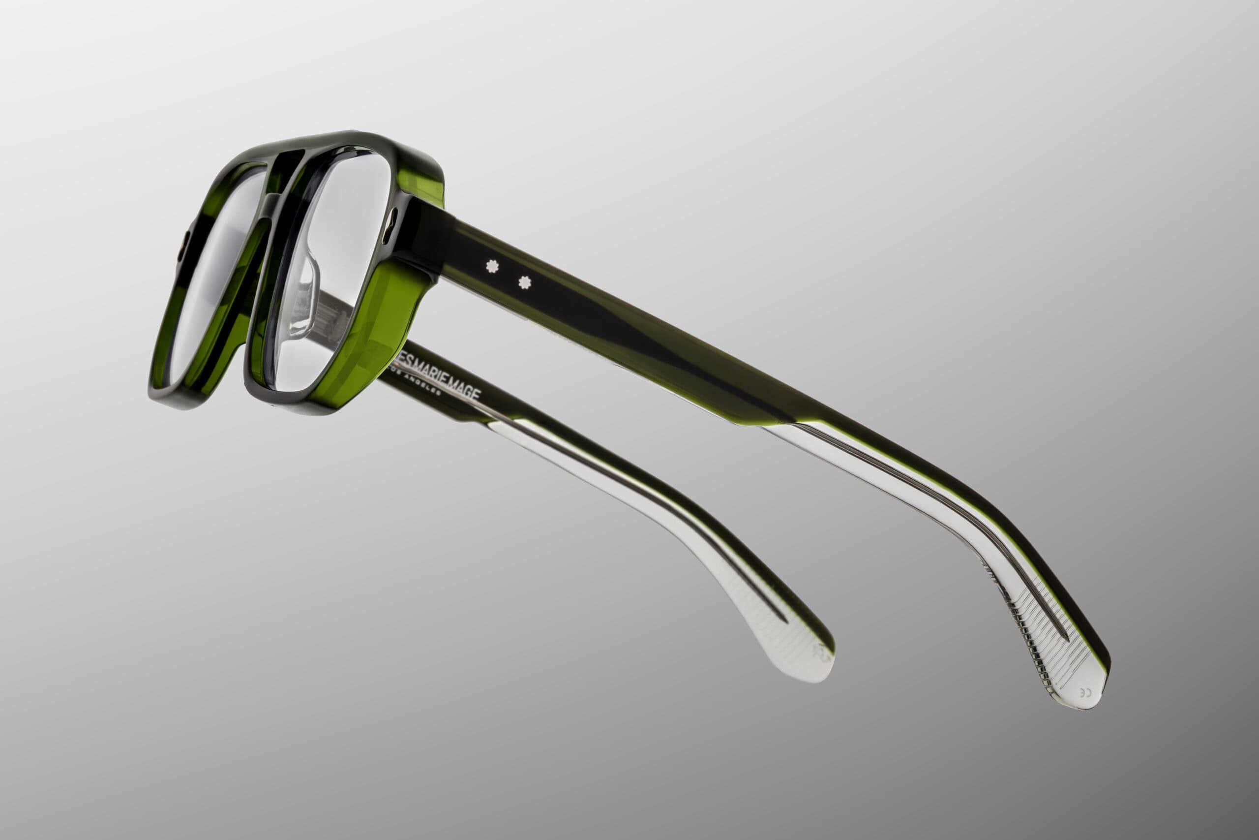 Frame: deep green Borneo Green, 8-millimetre hardened cellulose acetate