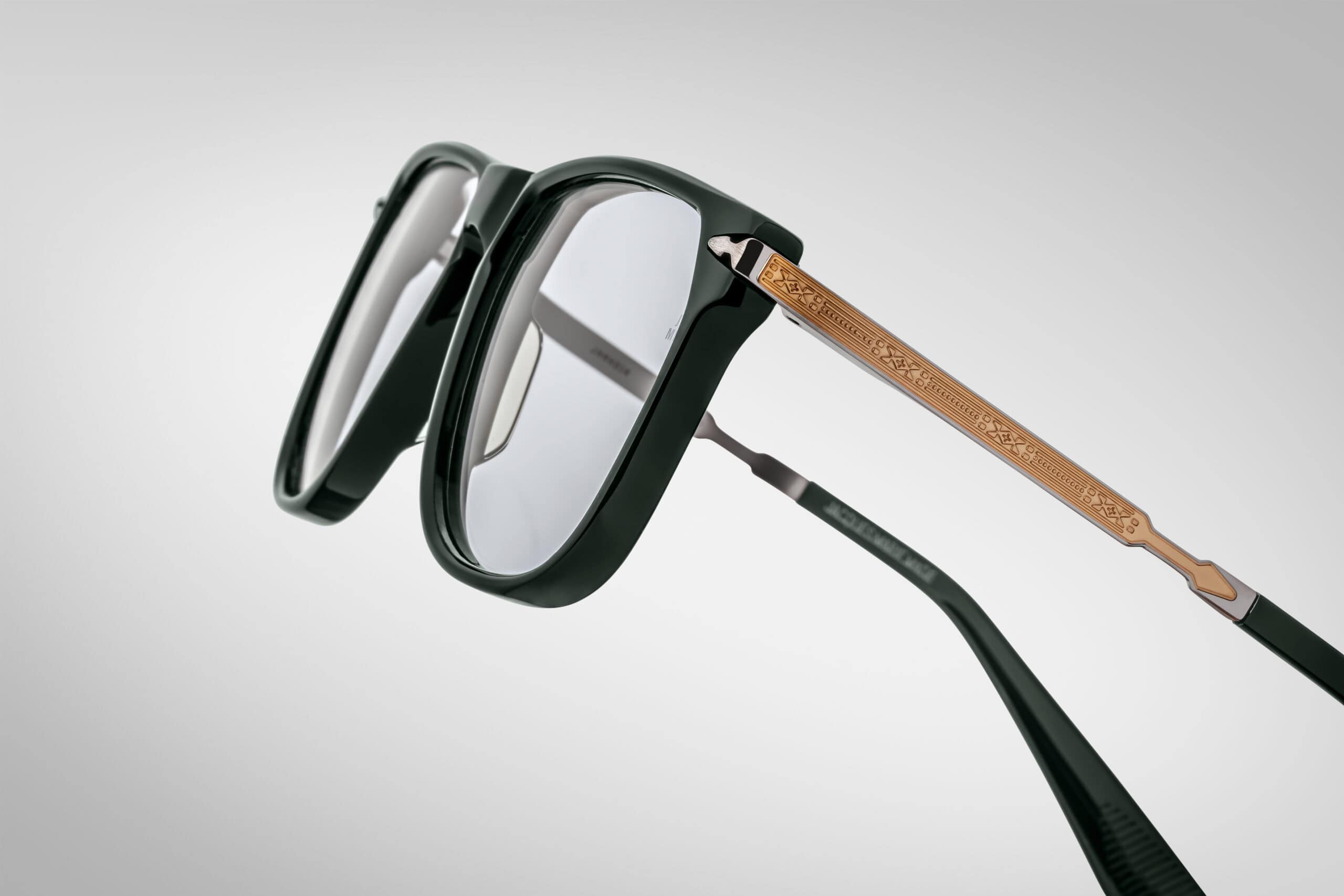 • Earpieces: made of lightweight titanium, decorated with precise engraving hairline and the arrow motif – the hallmark of Jacques Marie Mage