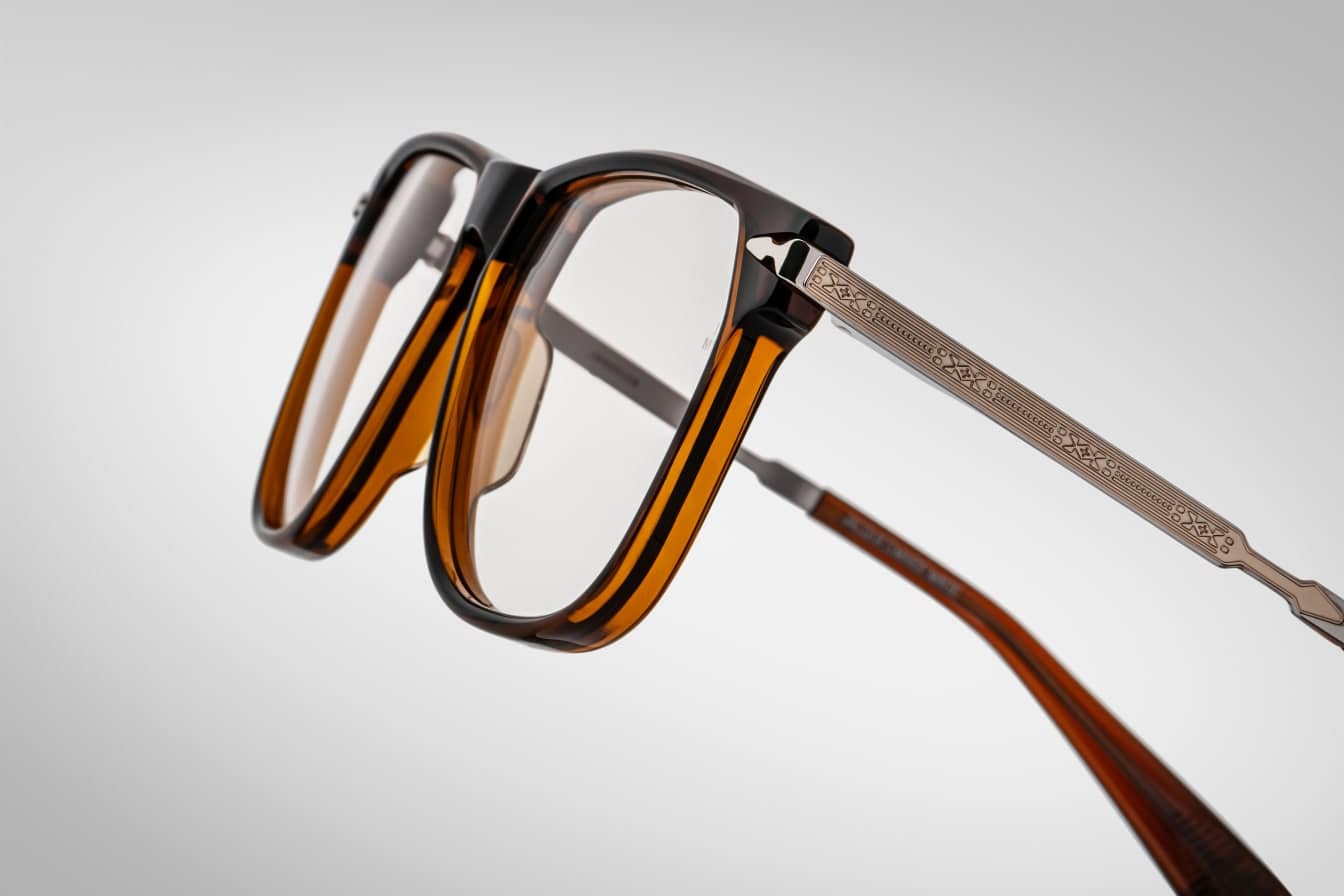 Frame: made of cellulose acetate in a deep amber shade Zoltar