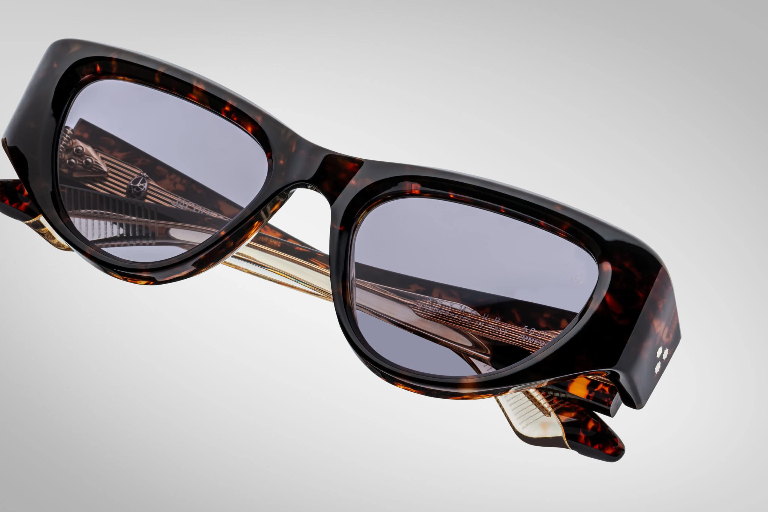 Model Seymour and Beau is a tribute to the golden age of catwalks – a time when supermodels became style icons and fashion was full of courage and magnetism. These medium-sized cat-eye sunglasses combine soft lines with a subtle, enveloping shape wrap-around and characteristic V-shaped bridge, creating a sophisticated, feminine profile with a seductive character.
