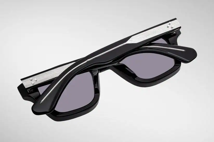 Handcrafted binding with 10 mm hardened acetate delights with its sculptural form and refined details. Double laminated side arms with metal accents and characteristic of the brand arrow-shaped rivets emphasise the unique character of the model. CR39 lenses with anti-reflective coating ensure excellent image clarity and full UV protection, and 7-barrel hinge guarantees durability and comfort.