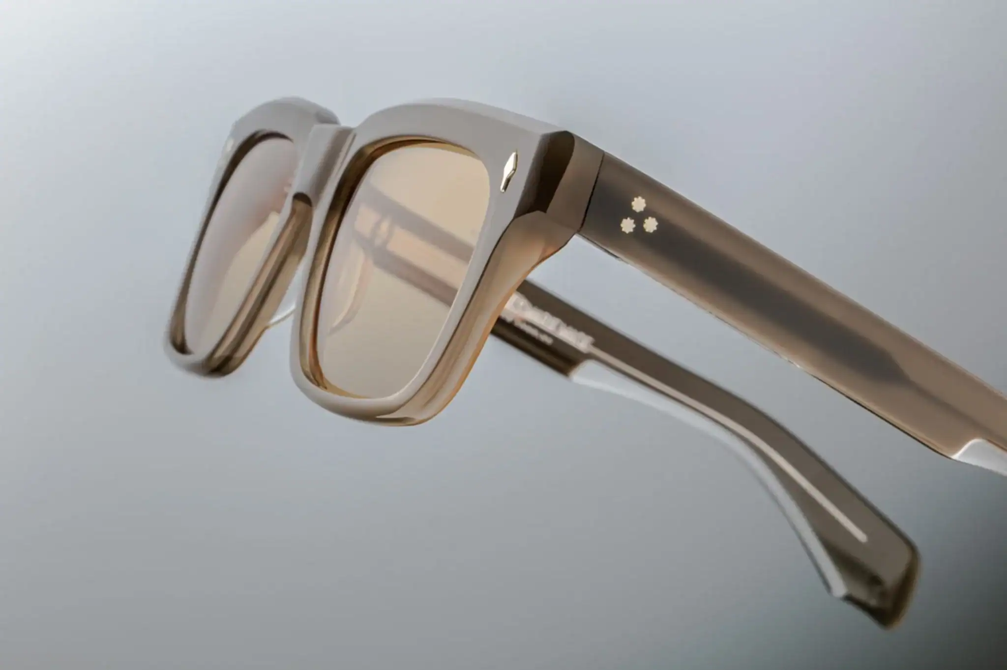 Glasses inspired by the aesthetics of the 1960s are delightful. architectural line, subtle angles and precise finishing. Characteristic of Jacques Marie Mage metal rivets in the shape of arrows, 7-barrel hinges and wire temples with hairline engraving create a cohesive composition of elegance and craftsmanship at the highest level.