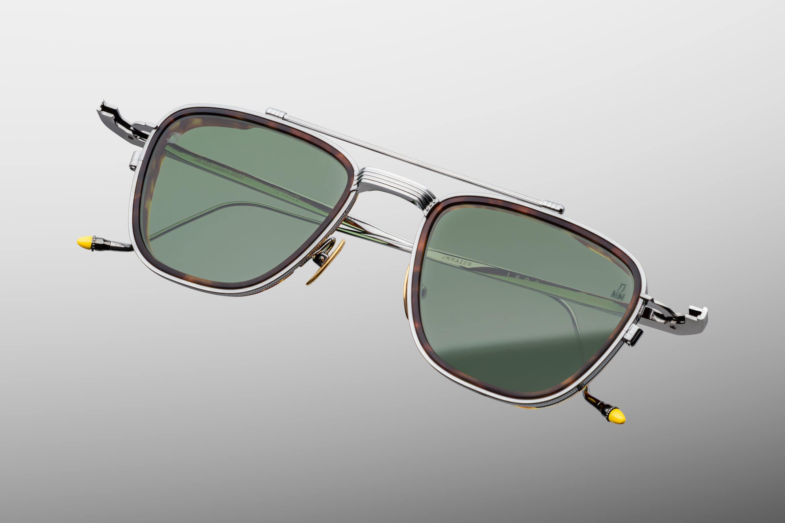Model wykończony został monoblokowymi zawiasami w kolorze gunmetal oraz ręcznie malowanymi końcówkami zauszników w żółtym epoksydzie z czarnym, polerowanym pierścieniem. Złociste noski i zielone mineralne soczewki Taiga Green z powłoką antyrefleksyjną od wewnętrznej strony podkreślają luksusowy charakter tej edycji.