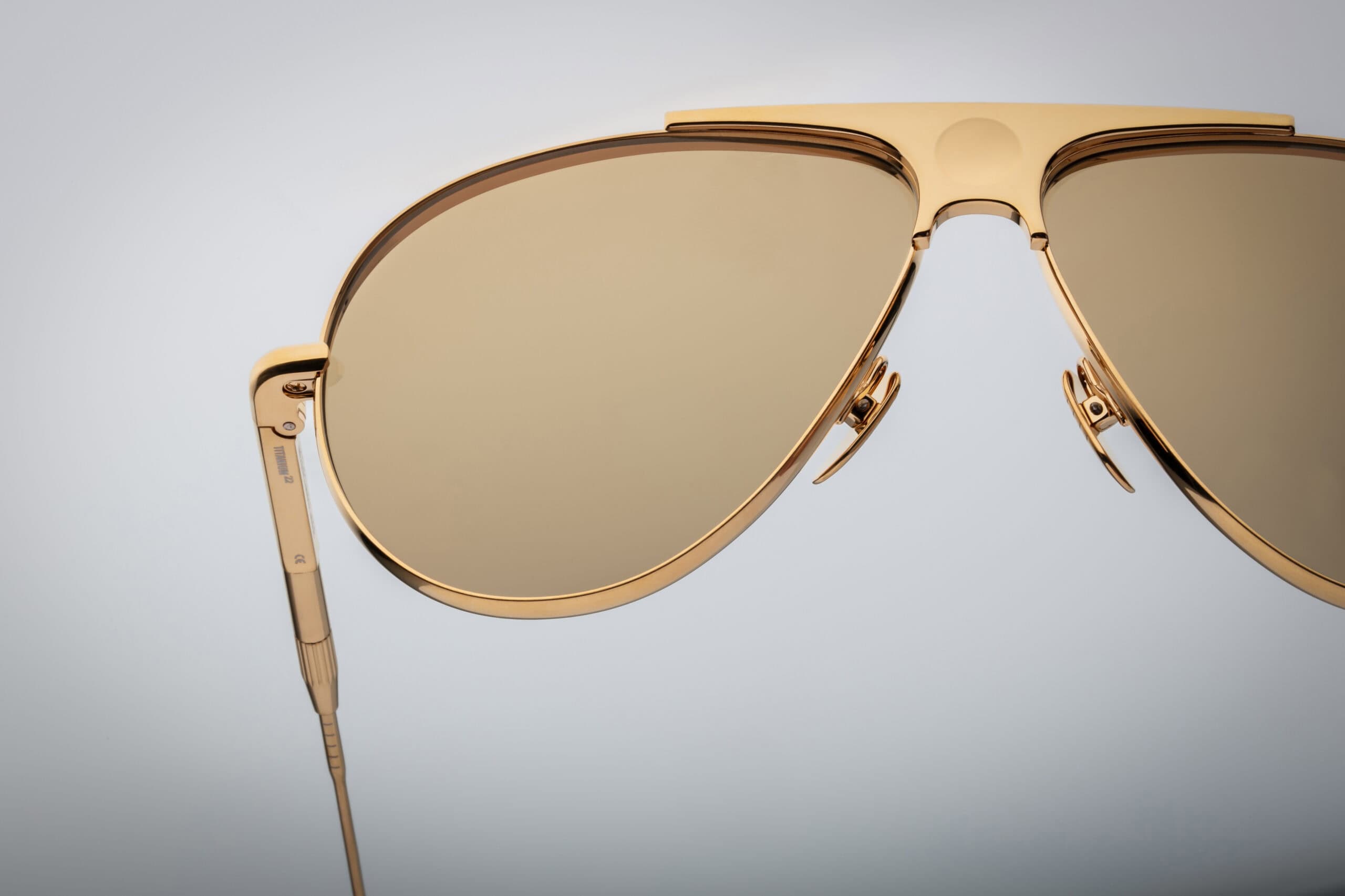 Model Daido in Gold to złota odsłona kultowej konstrukcji z serii Kyosho, będąca syntezą japońskiego kunsztu, technicznej precyzji i artystycznej równowagi. Zaprojektowane z myślą o tych, którzy poszukują harmonii między siłą a subtelnością, te tytanowe okulary łączą rzeźbiarską formę aviatora z detalem, który wyraża czyste piękno minimalizmu.